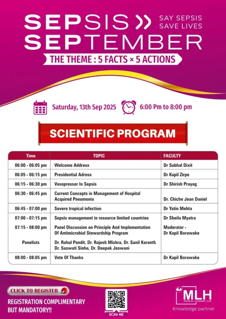 Sepsis Forum is a non-profit organization founded with the intent of meeting the educational and scientific needs of critical care specialists with a defined focus on sepsis to reduce the Indian burden of the disease as well as to increase public awareness. The society is guided by eminent doctors and academicians from India who have vast experience in the management of sepsis.